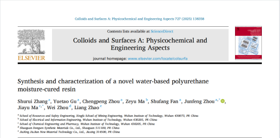 本网讯(通讯员 耿胡锐 张姝瑞)资源与安全工程学院教师周俊锋指导的本科生张姝瑞、辜越涛、周程朋,在国际学术期刊《Colloids and Surfaces A: Physicochemical and Engineering Aspects》(中科院二区)发表了题为“Synthesis and characterization of a novel water-based polyurethane moisture-cured resin”的学术论文。武汉工程大学为该论文的第一署名及通讯单位。