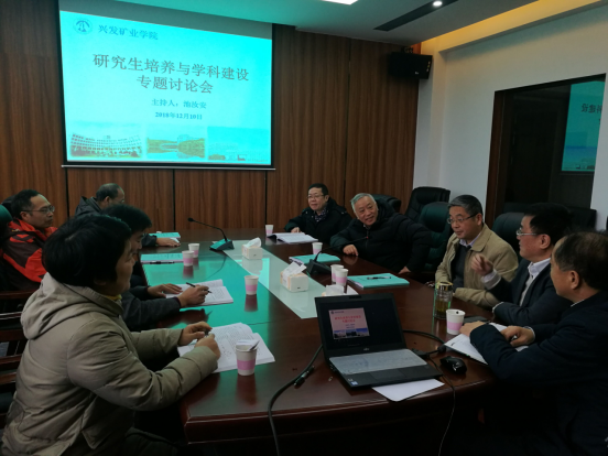 会议首先针对矿业工程研究生的报考现状进行分析,围绕研究生的专业方向培养与就业取向进行深入剖析探讨,此外,针对学院在矿业工程学科研究方向和平台建设现状,为我院矿业博士学位申请和博士点建设问诊把脉和传经送宝,在座的老师和博士都受益匪浅。