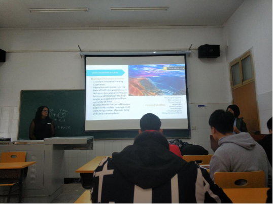 Saba Amanuel详细介绍科廷大学的发展历史,以及学校环境、教学设施、科研成果以及留学模式等方面。宣讲会上,Saba Amanuel对学生关于留学期间住宿、学习以及人际交往等方面的疑惑进行了一一解答,并欢迎我院采矿专业学生前往科廷大学留学深造。