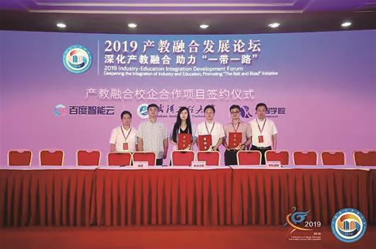 图为:武汉工程大学与国内知名企业签订产教融合校企合作项目协议