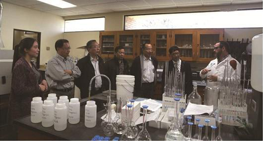 图为:武汉工程大学池汝安教授、张电吉教授在美国佛罗里达理工大学实验室进行学术交流