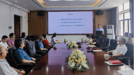 会上,党委书记江本武传达了学校秋季学期中层干部大会上王存文校长报告《笃定实干,聚力攻坚,以全年优异业绩开创事业高质量发展新局面》的主要精神,通报了2023年以来学校主题教育走深走实、持续加强政治引领、不断提升人才培养质量、持续提高师资队伍质量、不断加强一流学科建设、着力提升科技创新和服务社会能力、推进学校治理体系和治理能力建设、加强民生工程建设、推进全面从严治党等9个方面事业发展情况。对照下半年学校六方面重点工作:以高质量党建引领高质量发展,把培养一流人才作为核心使命,着力提升人才队伍水平,加快建设特色优势学科,全面提升科技创新能力,全面提高治理能力现代化水平,就学院如何贯彻落实学校要求进行了动员部署,推动学院全力完成下半年工作目标。江书记还向全院教职员工介绍了学校近期警情通报情况,并对学院的安全稳定工作做了安排部署。