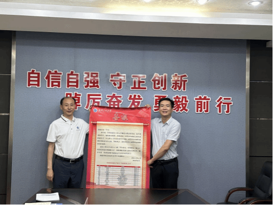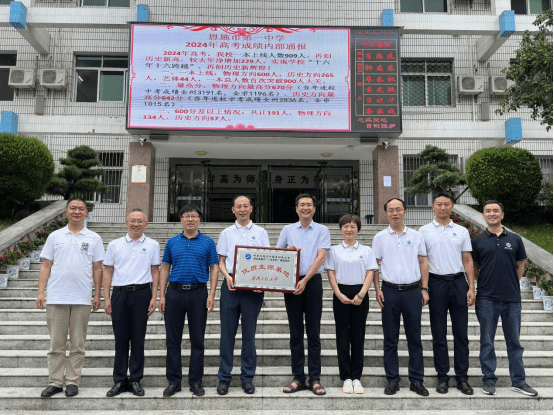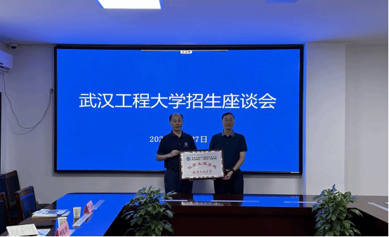 喻发全代表学校向恩施高级中学、恩施一中授予优质生源基地牌匾并送去就业喜报,期待更多优秀学子加入武汉工程大学。