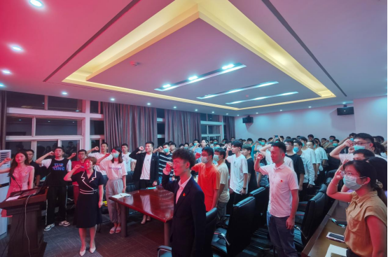 全体党员从党史学习中坚定信仰,从红色文化中汲取力量,在学院党委副书记李佳的领誓下,全体党员重温入党誓词。最后,活动在雄壮的《国际歌》歌声中结束。
