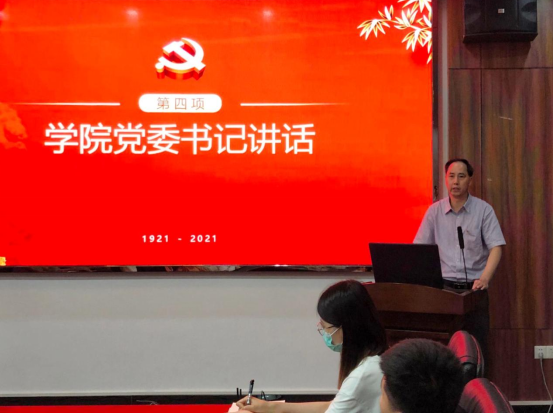 在认真聆听了大家的分享后,学院党委书记江本武做了讲话。他表示,党员们分享家乡革命先烈的红色故事体现了习近平总书记在庆祝中国共产党成立100周年大会上讲话的伟大建党精神,大家要学习并传承好伟大精神。习近平总书记在会上讲到,未来属于青年,希望寄予青年,学生党员们作为新时代青年,更应当传承先辈们遗留下来的伟大精神和智慧,成为实现中华民族伟大复兴的先锋力量,党员同学们要带头践行“请党放心,强国有我”的誓言。