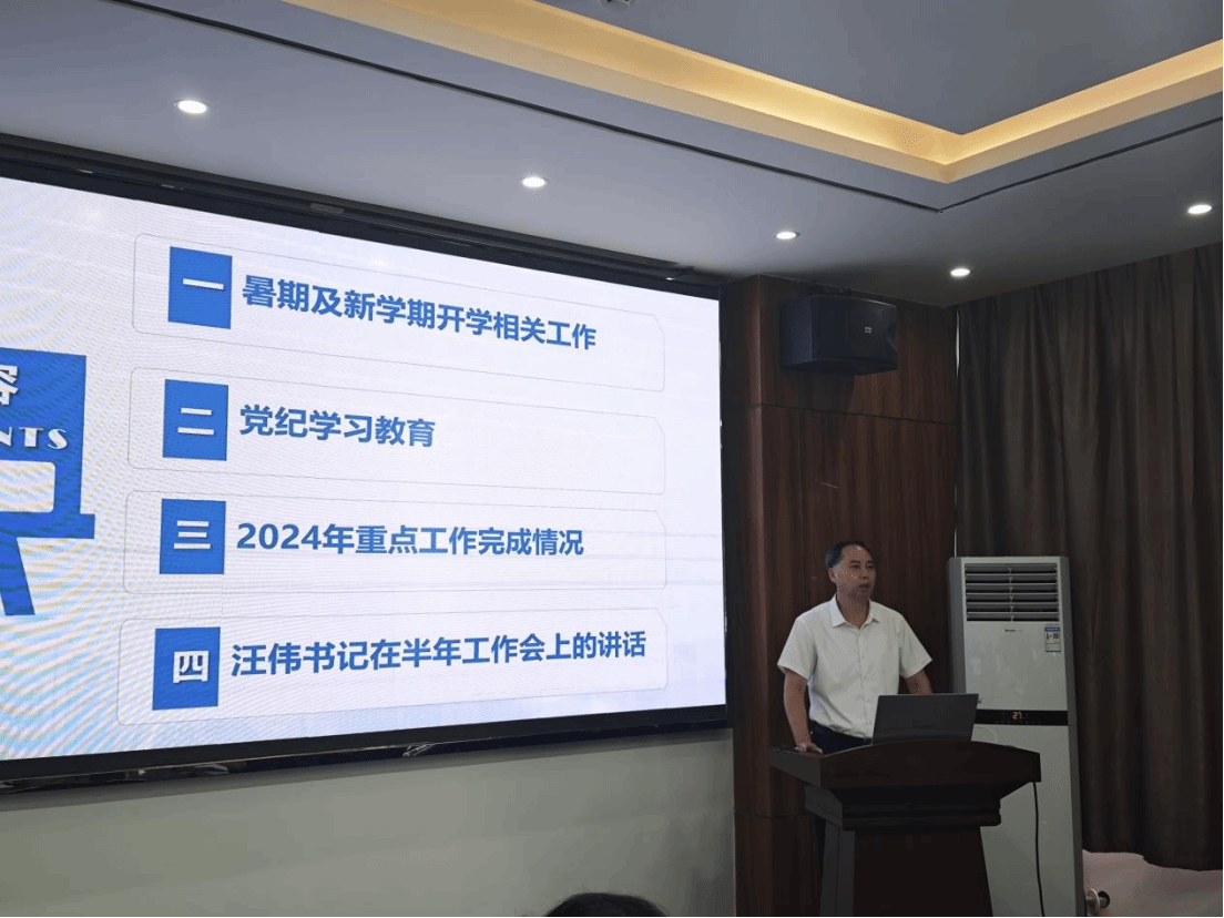 会上,学院党委书记江本武传达学习了学校党委书记汪伟在半年工作会上的讲话精神,通报了学院本年度重点工作完成情况,并带领全体教职工集中学习了违反党纪行为典型案例,以案说纪、以案示警,他指出,全体党员教师要从典型案例中吸取经验教训,时刻绷紧防腐拒变思想之弦,不断强化自我修炼、自我约束,以干净、忠诚、担当的实际行动履行好岗位职责。
