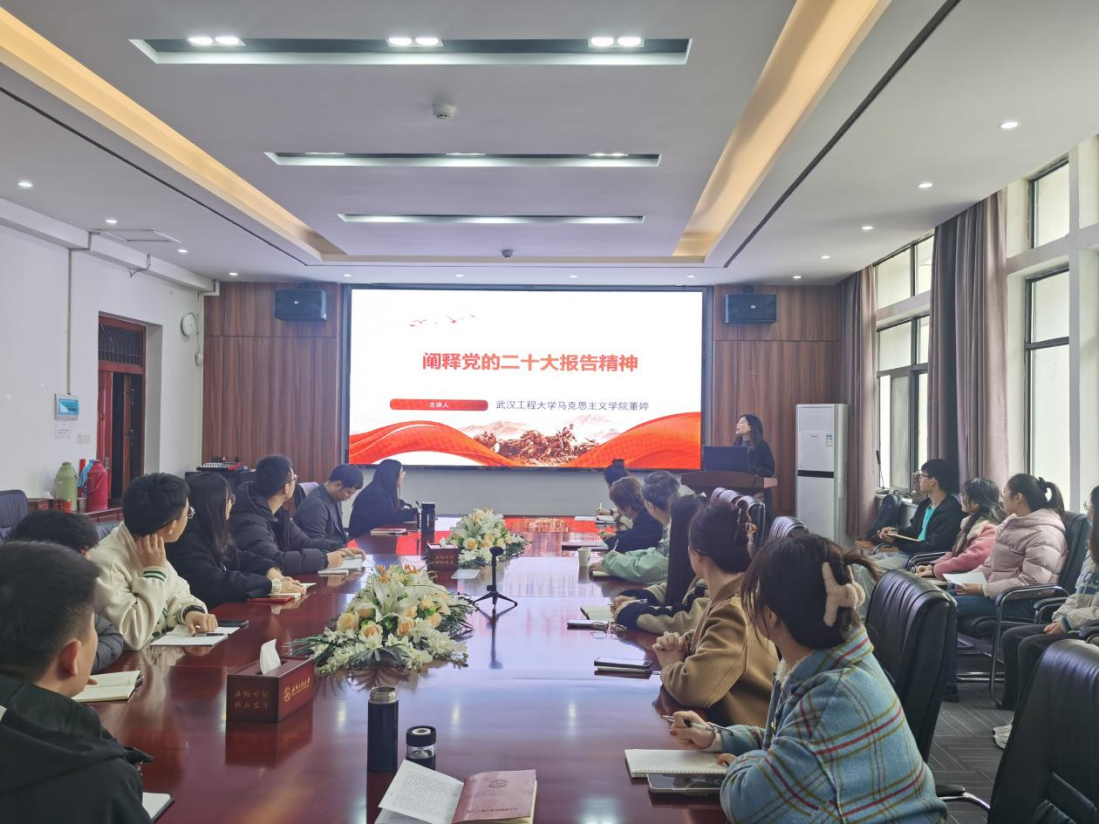董婷以《阐释党的二十大报告精神》为题,深入解读了党的二十大报告中“中国式现代化”提出意义、历史进程、战略目标、发展道路和时代要求。以中国式现代化全面推进中华民族伟大复兴,实现由世界大国向世界强国的跨越,是全党全国人民的共同愿望,是党的二十大向世界宣示的时代最强音。会上,她就“学生党员如何把握和提升理论宣讲能力”做了进一步的交流和探讨。