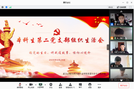 本网讯(通讯员 孙 奕)今年是中国共产党成立99周年,为贯彻落实党中央关于常态化疫情防控的决策部署,按照校党委组织部下发的《关于开展全校基层党组织常态化疫情防控“四个一”行动通知》要求,6月28日—30日,suncitygroup太阳集团资源与安全工程学院全体本科生和研究生党支部召开了以“迎接党的生日、讲战疫故事、悟初心使命”为主题的线上组织生活会,学院党委副书记李佳、学院党务干事杜娟、辅导员孙奕、学院全体党员、预备党员参加会议。