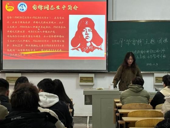 活动在庄严的团歌声中拉开序幕,2024级资源循环科学与工程01班和应急技术与管理01班全体同学肃立齐唱《光荣啊,中国共青团》,铿锵的旋律点燃了青年学子传承使命、接续奋斗的激情。随后,团支书以“雷锋精神永不过时”为切入点,结合雷锋同志的生平事迹与日记语录,生动诠释了雷锋精神的时代价值。从“螺丝钉精神”到“为人民服务”的赤子之心,从点滴善举到无私奉献的信仰坚守,同学们在聆听中深刻体悟到:雷锋精神不仅是中华民族的精神丰碑,更是新时代青年践行责任、传递温暖的行动指南。
