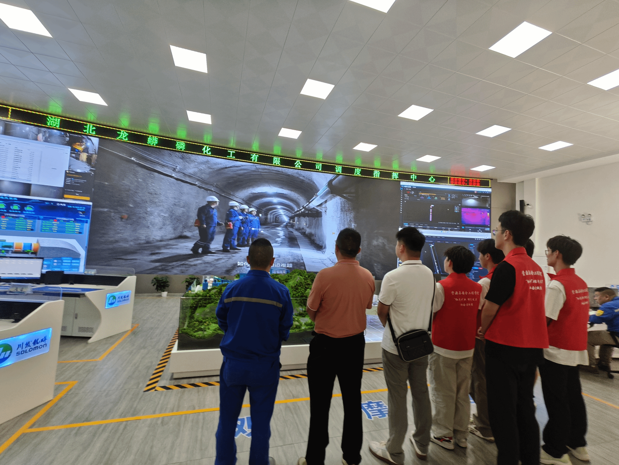 抵达矿井后,实践团随高安林步入企业智能监管中枢。一面巨幅监视屏如“矿山天眼”,实时映现井下人员轨迹与作业数据,中控人员依此精准调度,令千米之下的生产脉络清晰可辨。高安林的讲解深入浅出,从绿色开采的创新路径到安全设施的缜密布防,从资源高效利用的全局考量到科技赋能的实践细节,既彰显现代矿业“智控先行”的硬核实力,更流露企业对安全生产的敬畏与可持续发展的远思。这方中控室,恰是矿业从“人力驱动”向“智慧引领”转型的缩影,让成员对科技重塑传统产业有了鲜活认知。