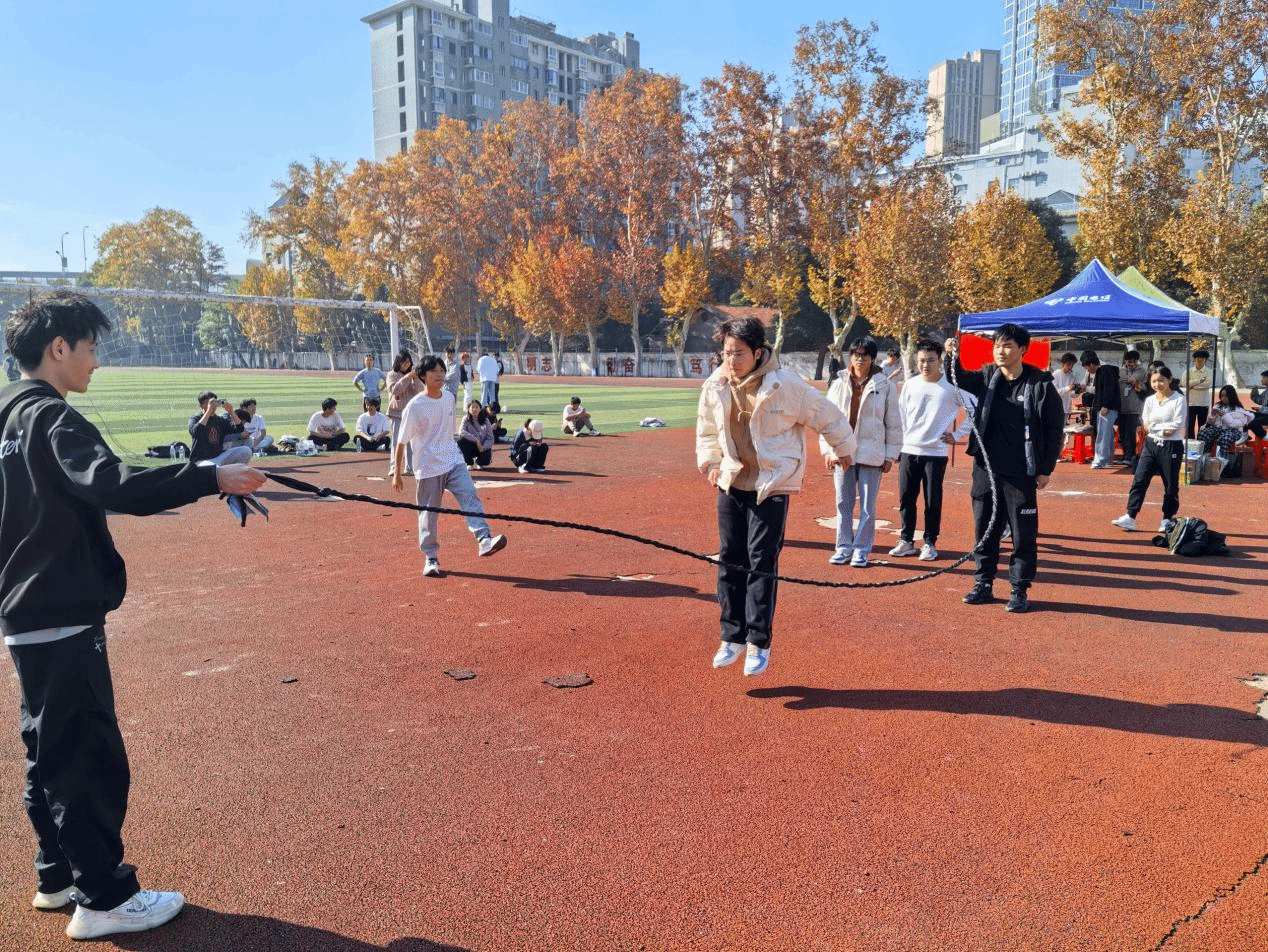 本网讯(通讯员 耿胡锐 王彦婧)为丰富学生课余生活,增强学院同学间的协作意识,为学院团学工作注入青春动能,11月27日下午,suncitygroup太阳集团资源与安全工程学院团委组织部于武汉工程大学武昌校区“一站式”学生社区举办“妙趣乘风起,携手共青春”主题团日活动。本次活动包含“趣味拔河”“八字跳绳”“趣味三子棋”“一圈到底”四个内容。学院团委指导老师耿胡锐、学生团委副书记王艺樨、主席团成员、学院全体团学骨干、2025级新生参加了本次活动。