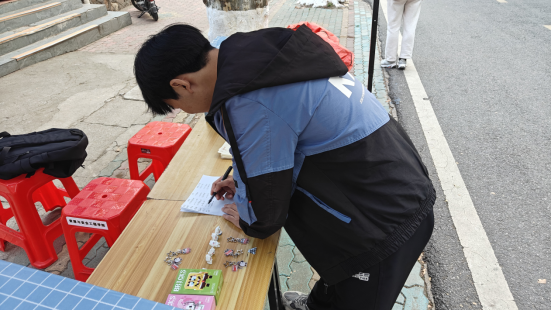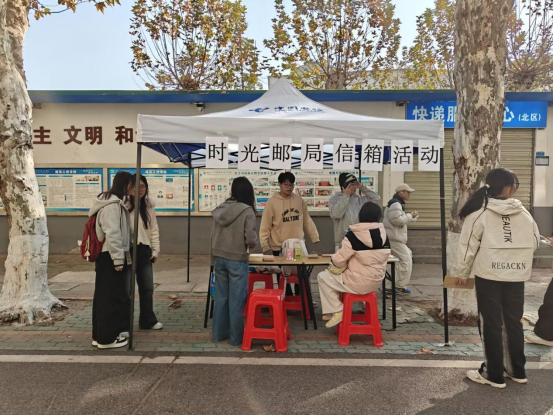 活动伊始,学术调研部成员精心布置摆点场地,张贴海报、准备信封、信纸与特色信箱,并安排值班人员为同学们详细介绍活动流程与信件格式要求。活动现场气氛温馨,同学们纷纷驻足,领取信纸,认真书写寄给一年后的自己或他人的信件。