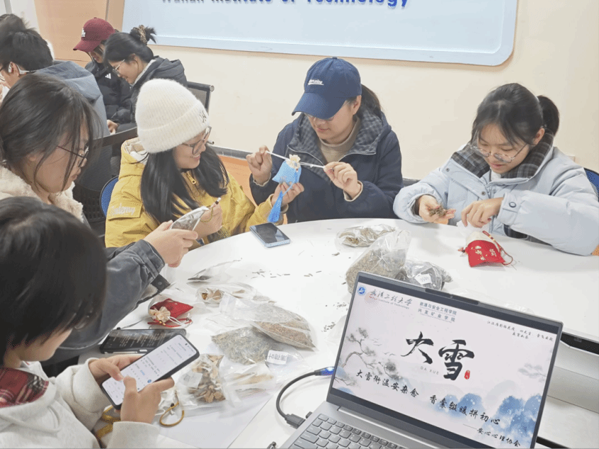 本网讯(通讯员 王耀眉 王睿玲)为传承中华优秀传统文化,丰富学生课余生活,缓解学业压力,12月8日,学院安心心理协会在一站式活动中心成功举办“药香沁心脾 大雪润心灵”传统文化系列手工活动。十余位同学齐聚一堂,在亲手制作中感受传统魅力,收获内心宁静。