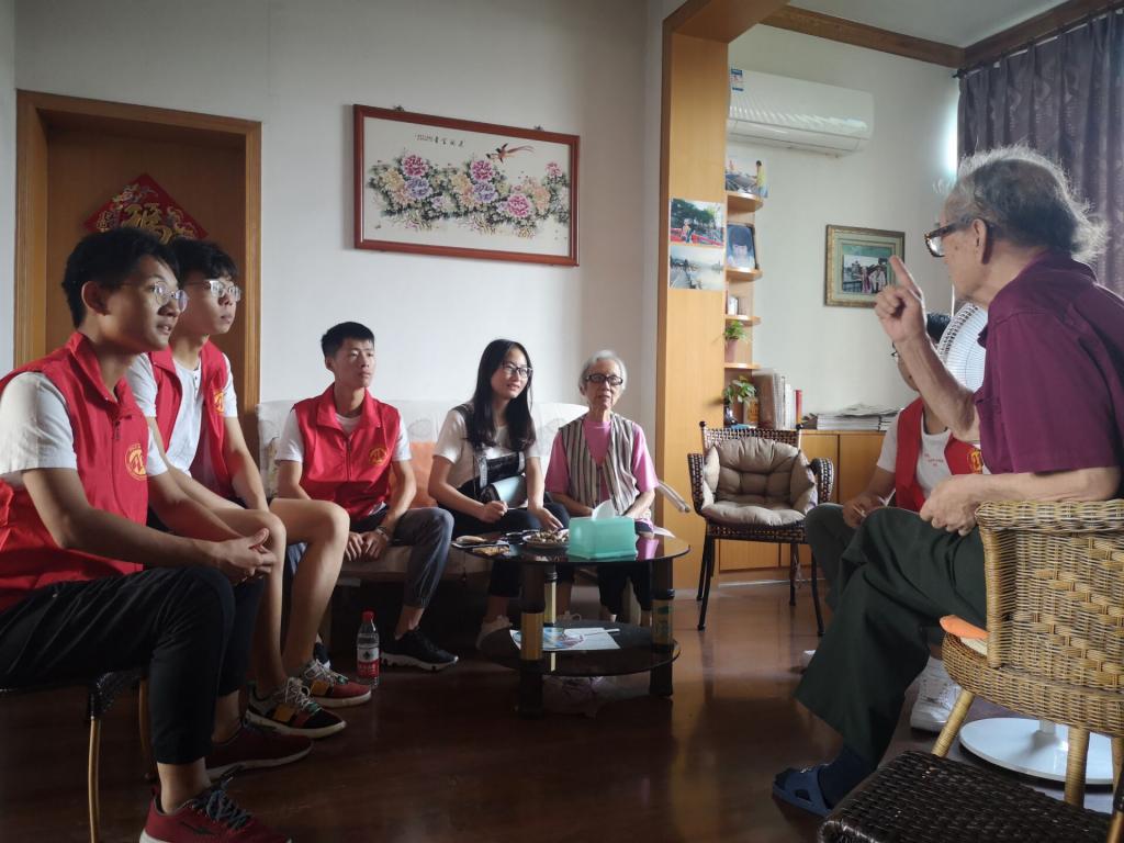 学生在和老兵们聊天,聆听他们的故事