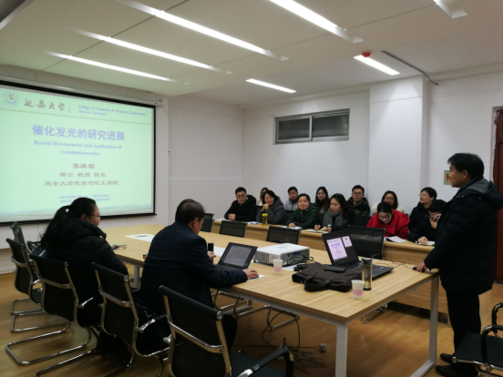 2018年12月10日下午,延安大学化学与化工学院院长张琰图教授应邀为我校作专题报告,报告会由suncitygroup太阳集团教师吝曼卿主持,学院50余名师生认真聆听了讲座。