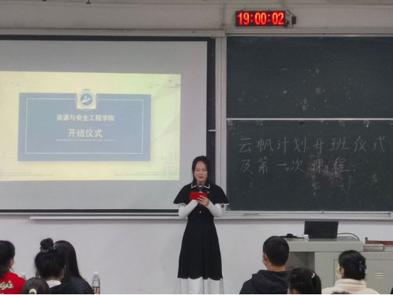 本网讯(通讯员 郑浩然 廖梓源)2022年11月13日晚,资源与安全工程学院在武昌校区二教举办第四届“云帆计划”培训班开班典礼,并开展了第一次课程培训。资源与安全工程学院第四届团委暨学生会全体成员、土木工程与建筑院主席团成员代表参加,学院团委副书记孙奕出席了活动。