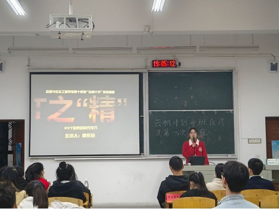 院团委副书记(学生)邓盈祺介绍了本次培训班的意义和作用,阐述了“云帆计划”中的“云帆”之意,“云帆”取自李白的诗《行路难》中“直挂云帆济沧海”,借由诗句中那不畏前路险阻,积极乐观的处事态度鼓励全体学生干部,号召全体成员在此次培训班中学到有用的知识和技能,提升自己的能力。