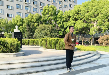 中外师生学子集聚许志伟纪念广场,怀着最崇高的敬意,深切缅怀烈士许志伟。活动中,辅导员郑浩然、志愿者齐智越分别用中英文向在场师生介绍了许志伟的生平事迹。