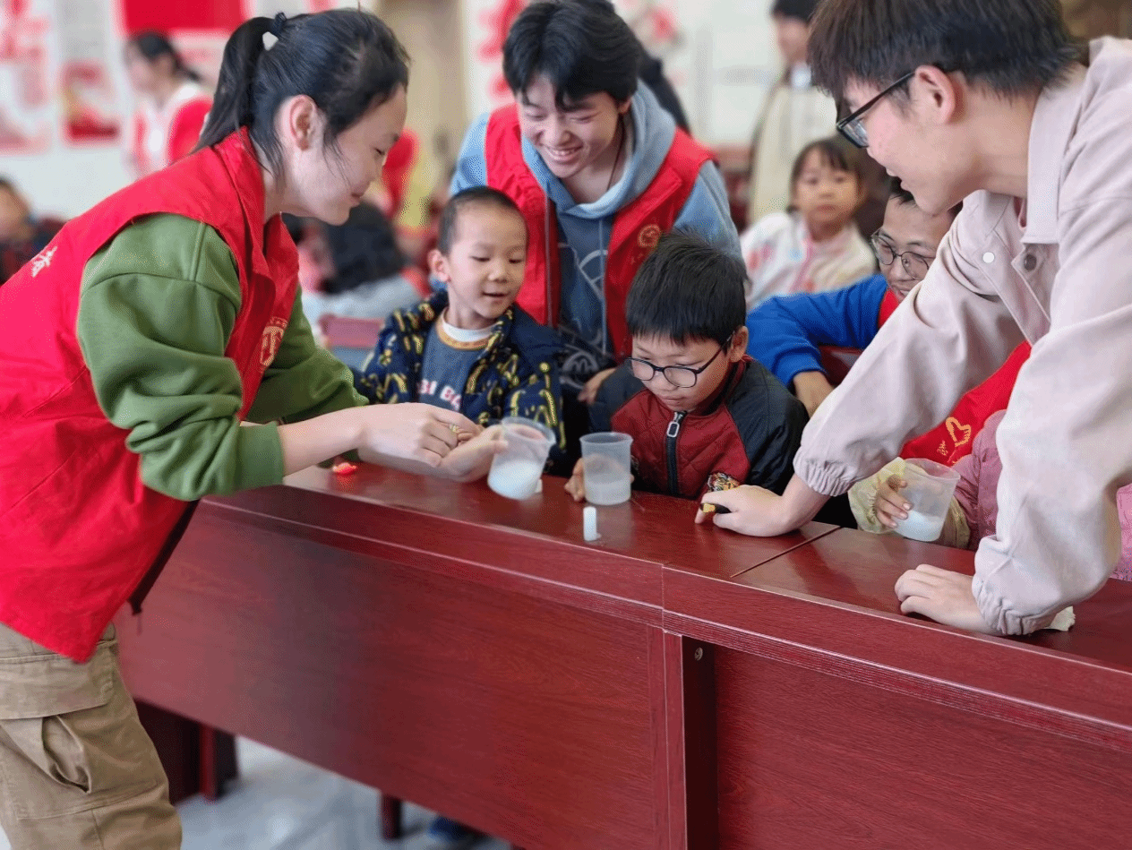 以工程大社区困难家庭、务工人员子女、军烈子女、单亲等家庭的学龄前儿童为主要对象,结合学院工科专业特色,开设科学实验小课堂、安全知识课堂、陪伴游戏班等活动。摒弃传统“一味知识输出”的授课方式,课堂上和小朋友激情互动,在实践中学到知识,在课堂上,积极鼓励小朋友们亲自动手做实验,做手工,最大程度地发挥他们的主观能动性,调动小朋友的求知欲与好奇心。