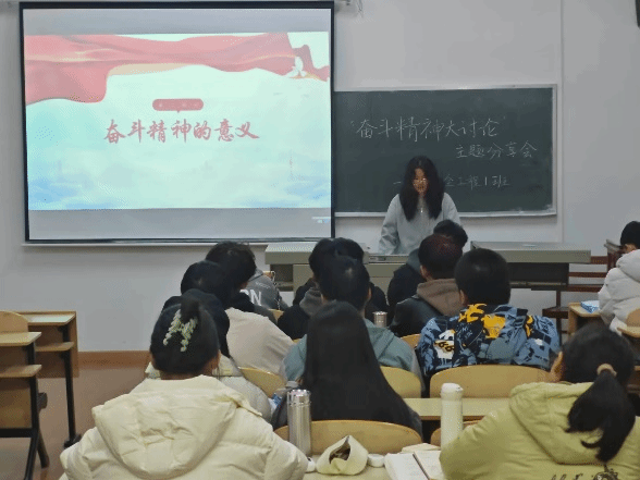 参会同学围绕“奋斗精神”,分享了自己工作生活中的奋斗感悟,营造出敢于奋斗、善于奋斗的良好氛围。“团结奋斗,贡献自己的一份力量,功成不必在我,功成必定有我。”来自2023级安全工程1班的孟亚迪同学这样说道。