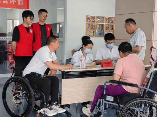 下午,志愿者们协助医生和教练员对营员进行了专项身体测评。在服务过程中,志愿者们主动和教练员、营员进行沟通,了解他们的生活方式和习惯,通过交流互动更好地理解脊髓损伤者的感受与需求,与其建立起信任和亲近,进一步促进残健互融。