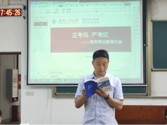 本网讯(通讯员 孙 奕)为端正考风,严肃考纪,营造安全诚信、公平公正的考试环境,提高考试的公信力和满意度,构建良好的考试秩序,5月23日下午,学院在武昌校区2教2101教室开展了以“正考风 严考纪”为主题的考风考纪教育大会,2023级全体本科生参加。