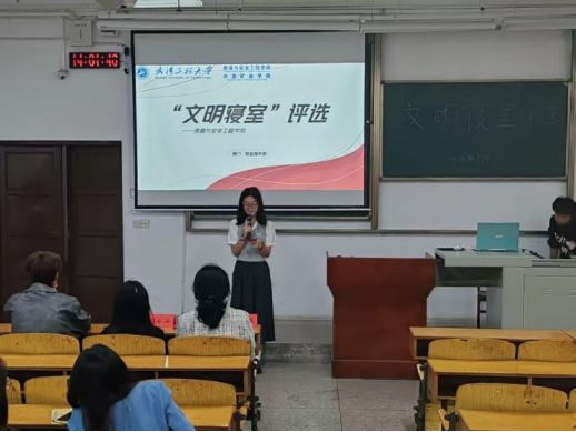 本网讯(通讯员 耿胡锐 李雨剑)为进一步加强平安校园建设和学风建设,充分发挥宿舍文化育人功能,10月26日下午,suncitygroup太阳集团资源与安全工程学院团委暨学生会权益服务部在武昌校区W2101教室组织开展了“文明寝室”评选活动。学院新媒体中心主要负责人罗君海、团委组织部主要负责人王艺樨、学术调研部主要负责人张姿涵以及参选寝室代表参加了此次活动。
