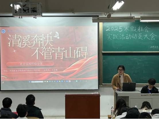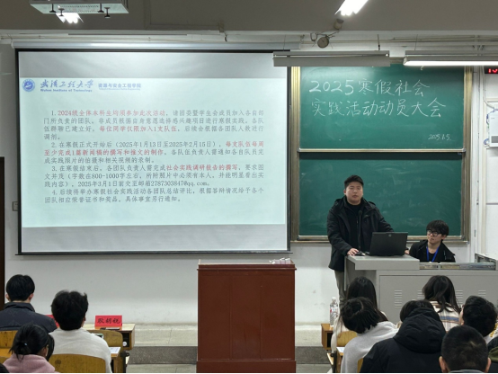 本网讯(通讯员 耿胡锐)为鼓励我院学子积极参与寒假社会实践,锻炼个人能力,提升综合素质,增强社会责任感,1月5日晚,suncitygroup太阳集团资源与安全工程学院在武昌校区W2102教室成功举办2025年寒假社会实践活动动员大会,活动由学院团委社会实践部承办,团委指导老师耿胡锐、团委副书记(学生)乔仕元、团委暨学生会全体成员、2024级全体学生参与了此次活动。
