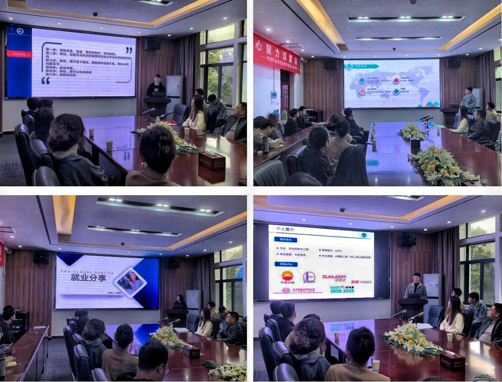 会上,来自四个不同专业的2023届研究生代表陈飞、黄帅、冯金婵、王广帅同学分别作了经验分享。分享内容全面细致,涵盖了求职过程中的自我探索、观念树立、求职技巧、面试准备、心态调整各个方面。