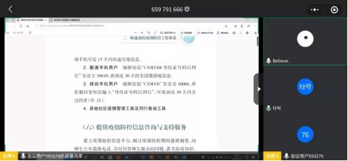 我院以“学指南,强防范”为主题,各班级积极按时开展。按照“科学防治、依法管理、分类指导、家校联防、教医联控”防控原则,学习新型冠状病毒相关基础知识、学校疫情防控工作体系构建。同学们积极响应学院号召,以班级为单位,依托微信、QQ、腾讯课堂、钉钉等软件开展主题班会,组织讨论、分享学习感悟。
