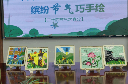 立春被东风解冻的新芽、夏至晚风中的蛙鸣蝉噪、秋天披上金色霞光的梧桐、冬至藏在饺子里的思念,一幅幅充满了生机和活力的节气手工画跃然指尖,现场传来阵阵赞美和惊叹,同学们互相展示交流作品内容。